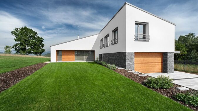 tvaru písmene L. Na uliční čáru jsme postavili garáž, obývací pokoj jsme odsunuli