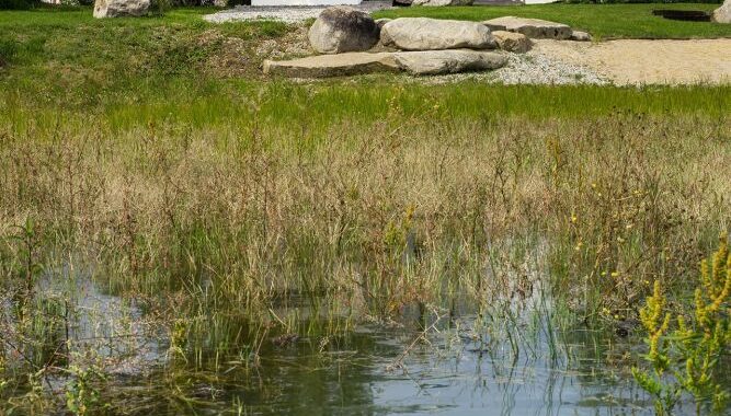 Dům se nachází v těsné blízkosti vodní plochy, celé