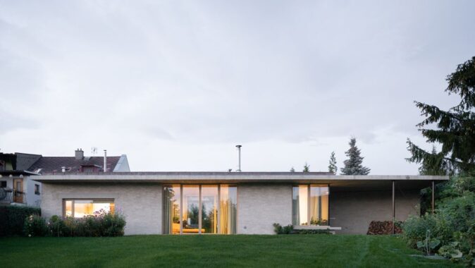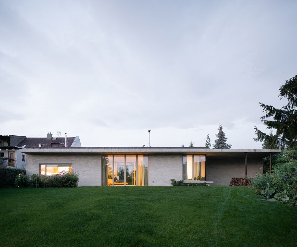 V místě řadového dvoupatrového domu ve vilové čtvrti vznikl atriový přízemní dům. Klient měl přání bydlet v intenzivním kontaktu se zahradou.