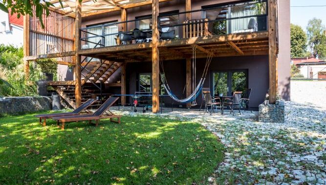 tichá vesnice přímo ve městě. Dům se může postavit rychle, ale zeleni a