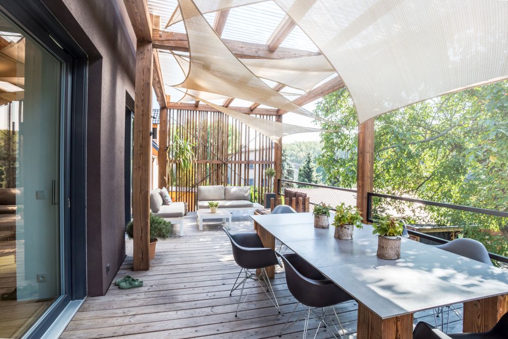 Dům jsme přisadili k úzké jednosměrné ulici, takže působí jako malý a nenápadný. Do zahrady vyrostl o jedno podlaží, otevřel se tak výhledu jižním směrem. Zahrada poskytuje volnost a díky poloze okolních domů seřazených v linii podél ulice nabízí soukromí a uzavřenost.