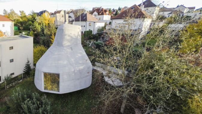 kamarádky, která chtěla netradiční dům na poměrně komplikovaném pozemku. Jedná