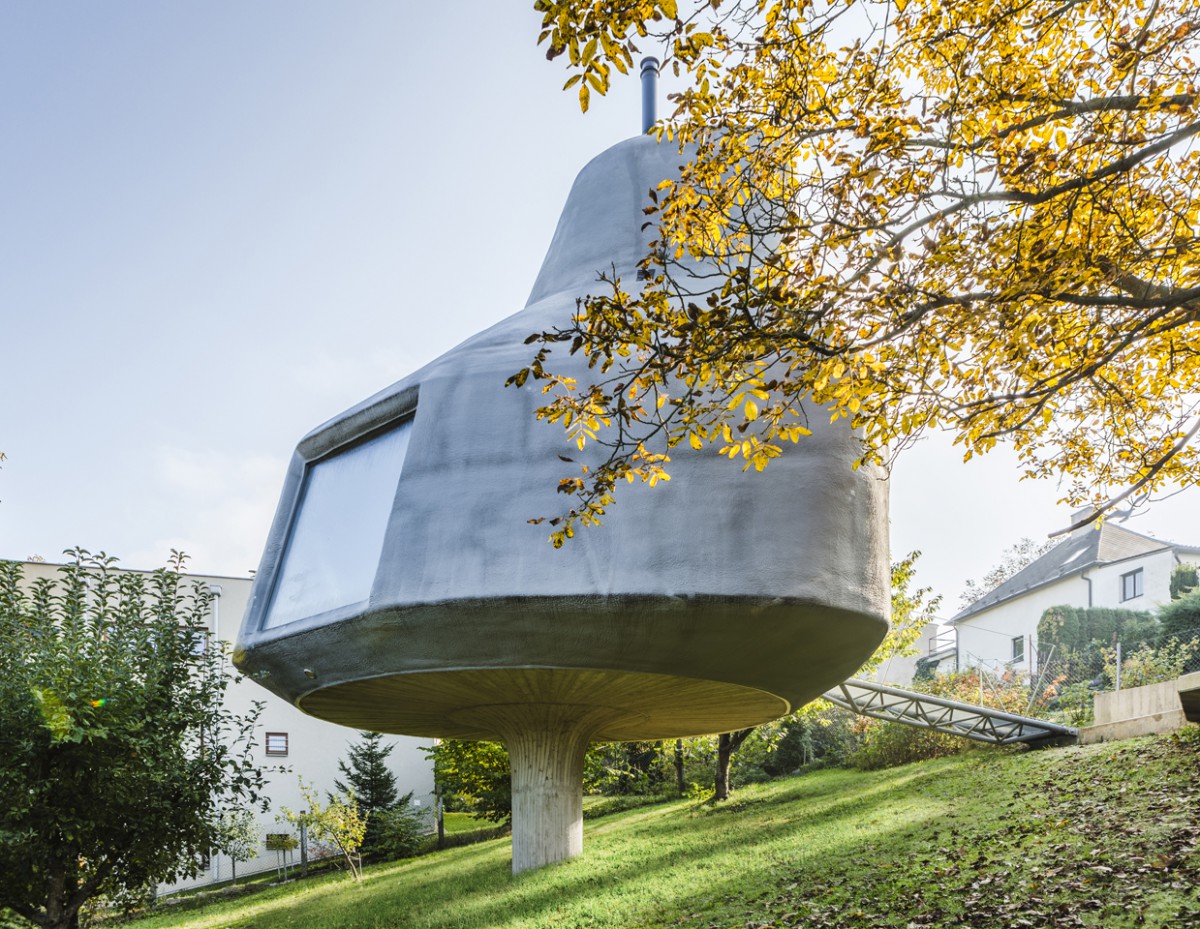 Klasické založení stavby do svahu by bylo mnohem dražší. Dřevostavba byla
