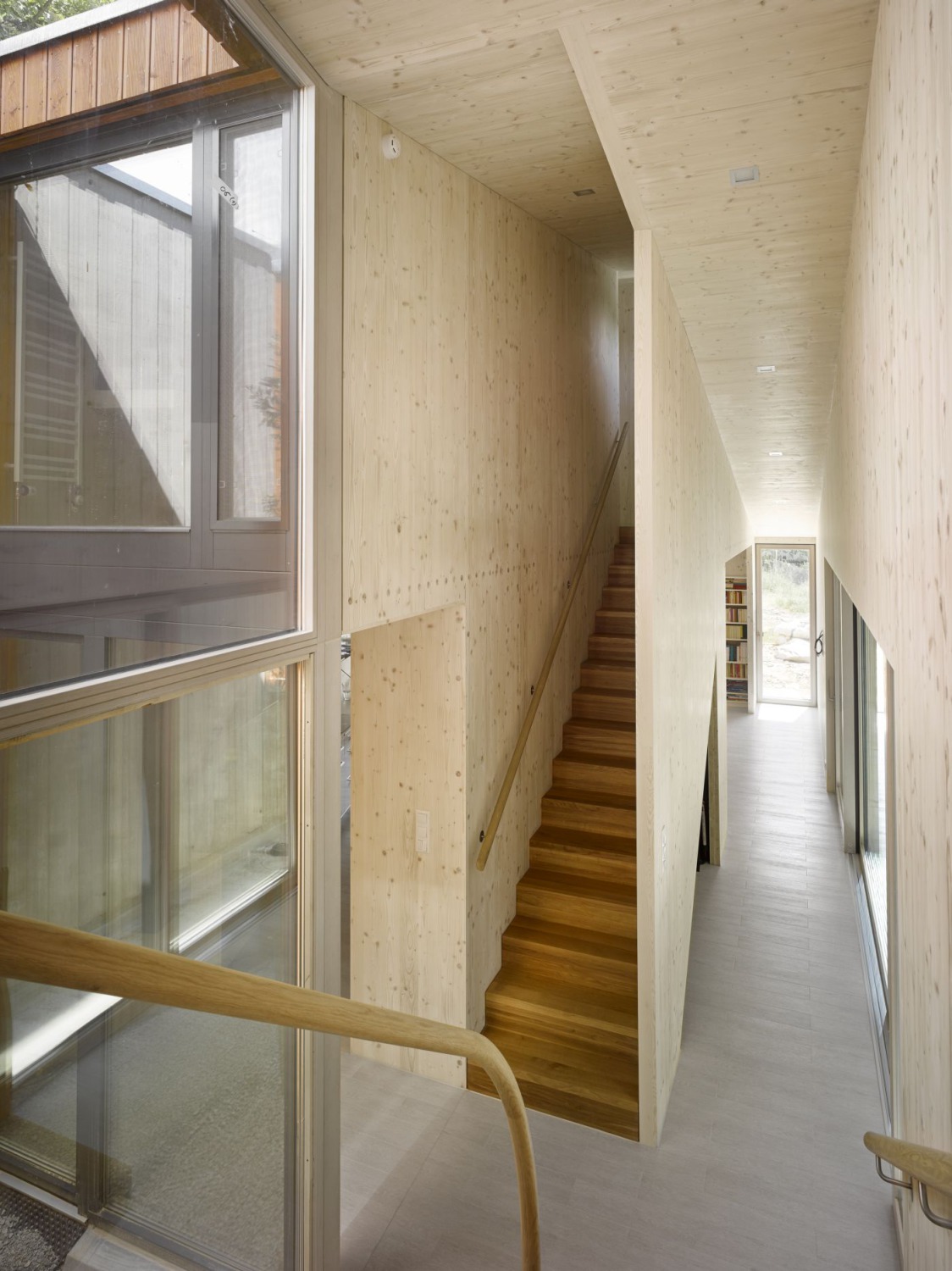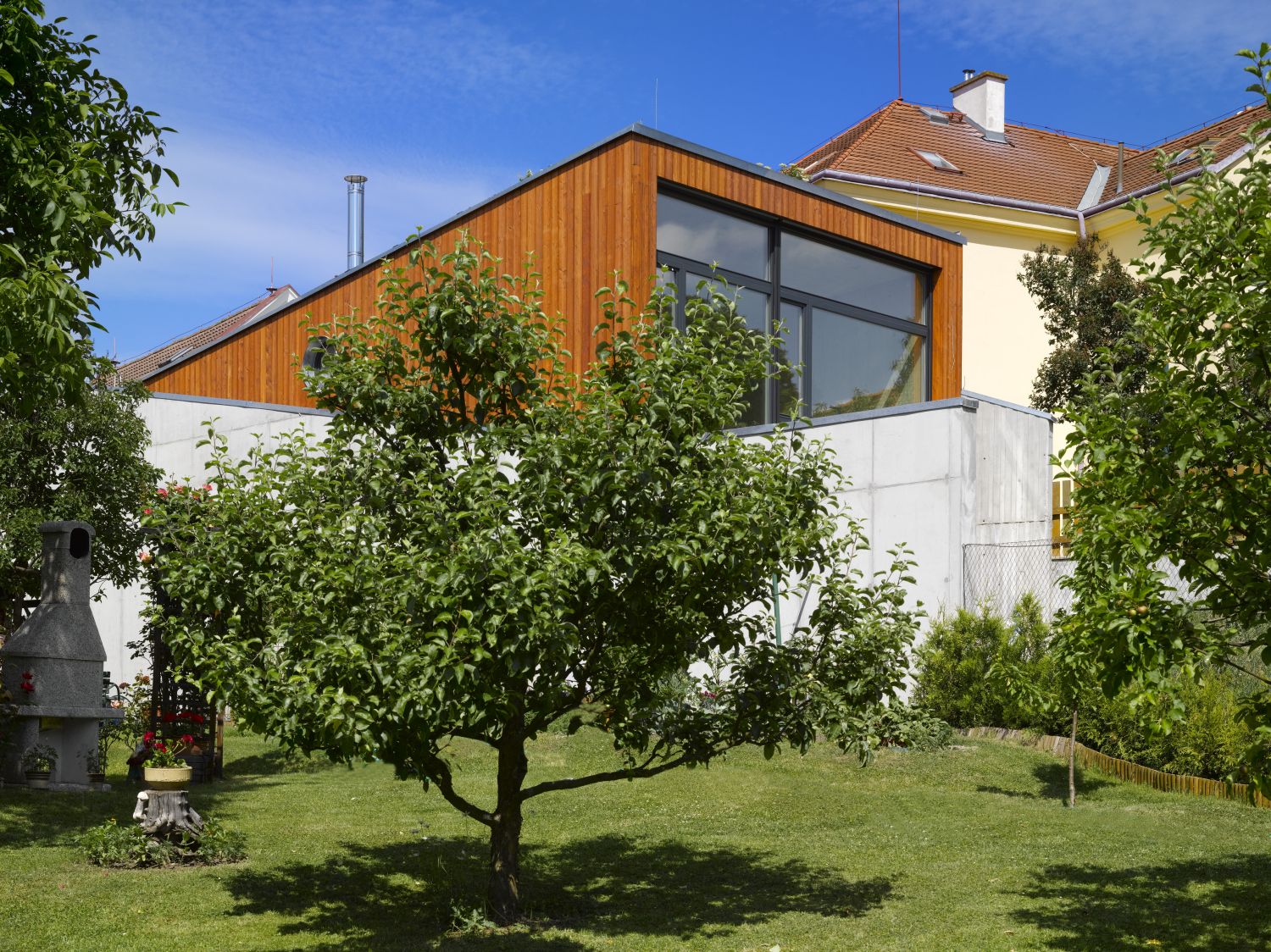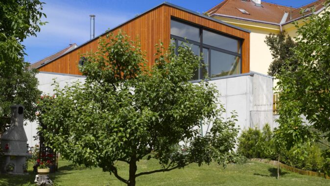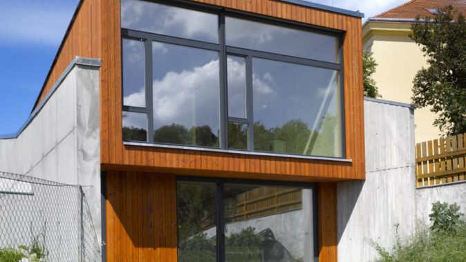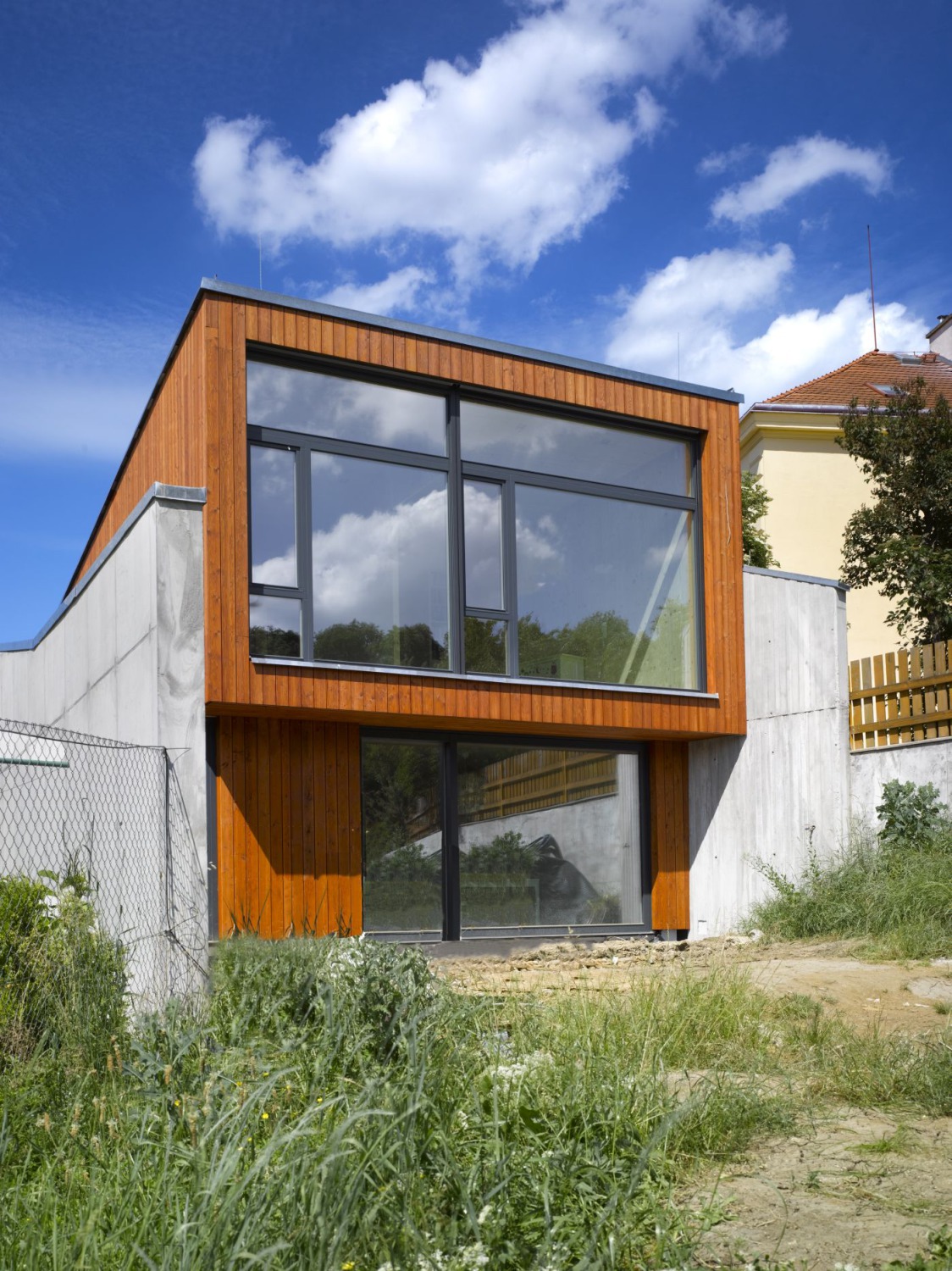 Dům, jehož pozemek měří v nejužším místě pouhé čtyři metry. Dům, jehož vysoké stěny kopírují krajinu a reflektují skály Prokopského údolí. Dům, který zaplnil zbytkový prostor „přesýpacích hodin“. Dům, který odděluje jižní zahradu od ruchu velkoměsta.
