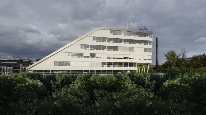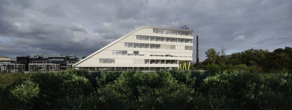 sedmipodlažní hmota, která je svým měřítkem partnerem administrativním objektům