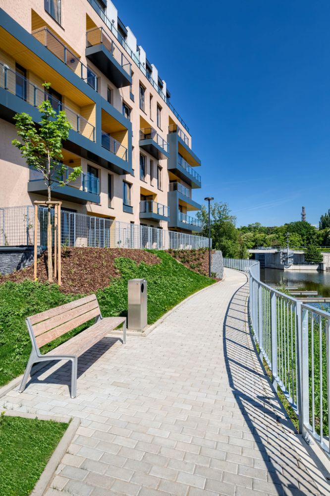 Rezidenční projekt je zasazen do příjemného prostředí podél dvou slepých ramen Vltavy. Přináší tak možnost zakotvení lodi jen pár metrů od vlastního bytu – součástí rezidence je i marina. Lokalita nabízí také občanskou vybavenost včetně škol, sportovišť a zdravotnických zařízení.