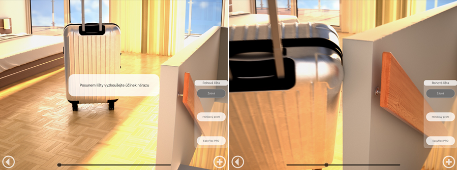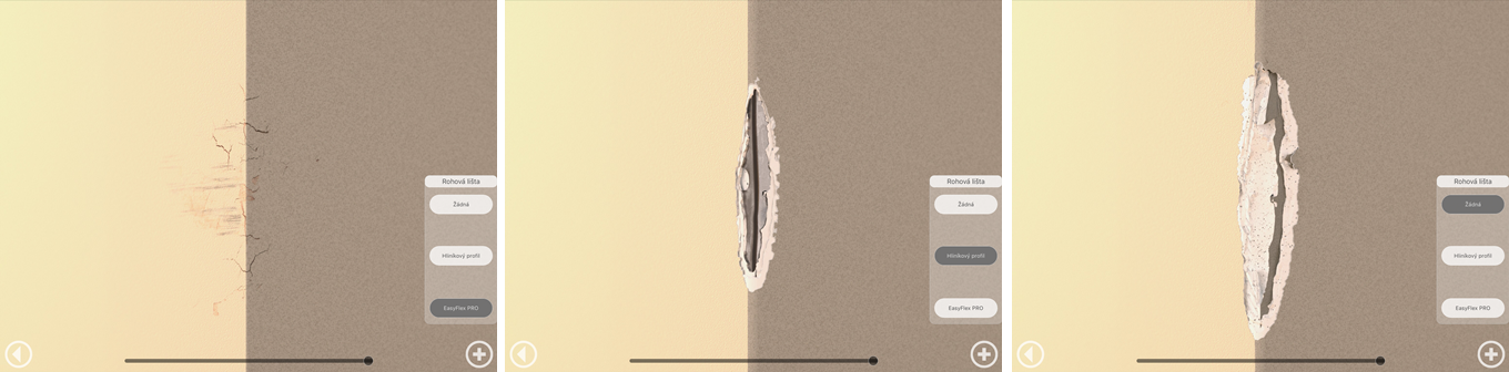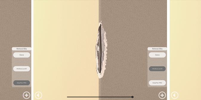 Nová aplikace “Dokonale hladké stěny – Best Finish Tool” Vám názorně ukáže, jak vypadá povrch stěny s různou kvalitou povrchu v průběhu dne, kdy slunce ozařuje skrz okno místnost, a večer za umělého osvětlení. Můžete si také promítnout, jak dopadne náraz předmětu na roh, který není buď nijak chráněn, nebo je chráněn standardním hliníkovým profilem nebo speciálními páskami EasyFlex nebo AquaBead.