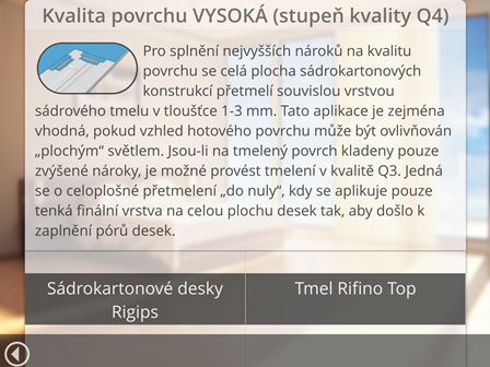 Zároveň Vám v aplikaci společnost Rigips nabízí kompletní seznam materiálů, s nimiž docílíte toho nejlepšího výsledku.
