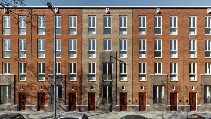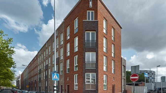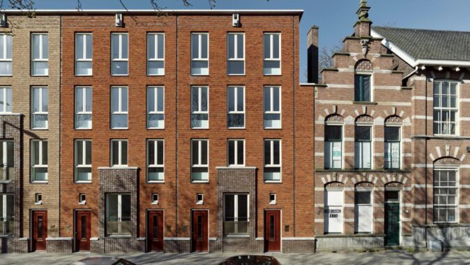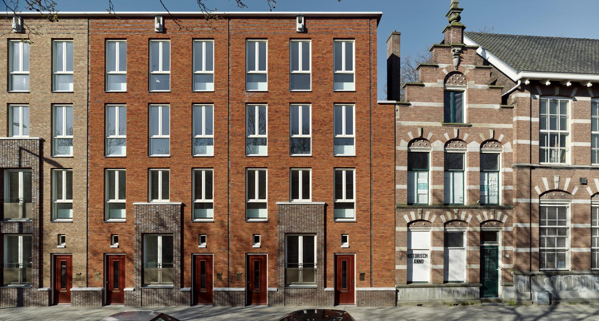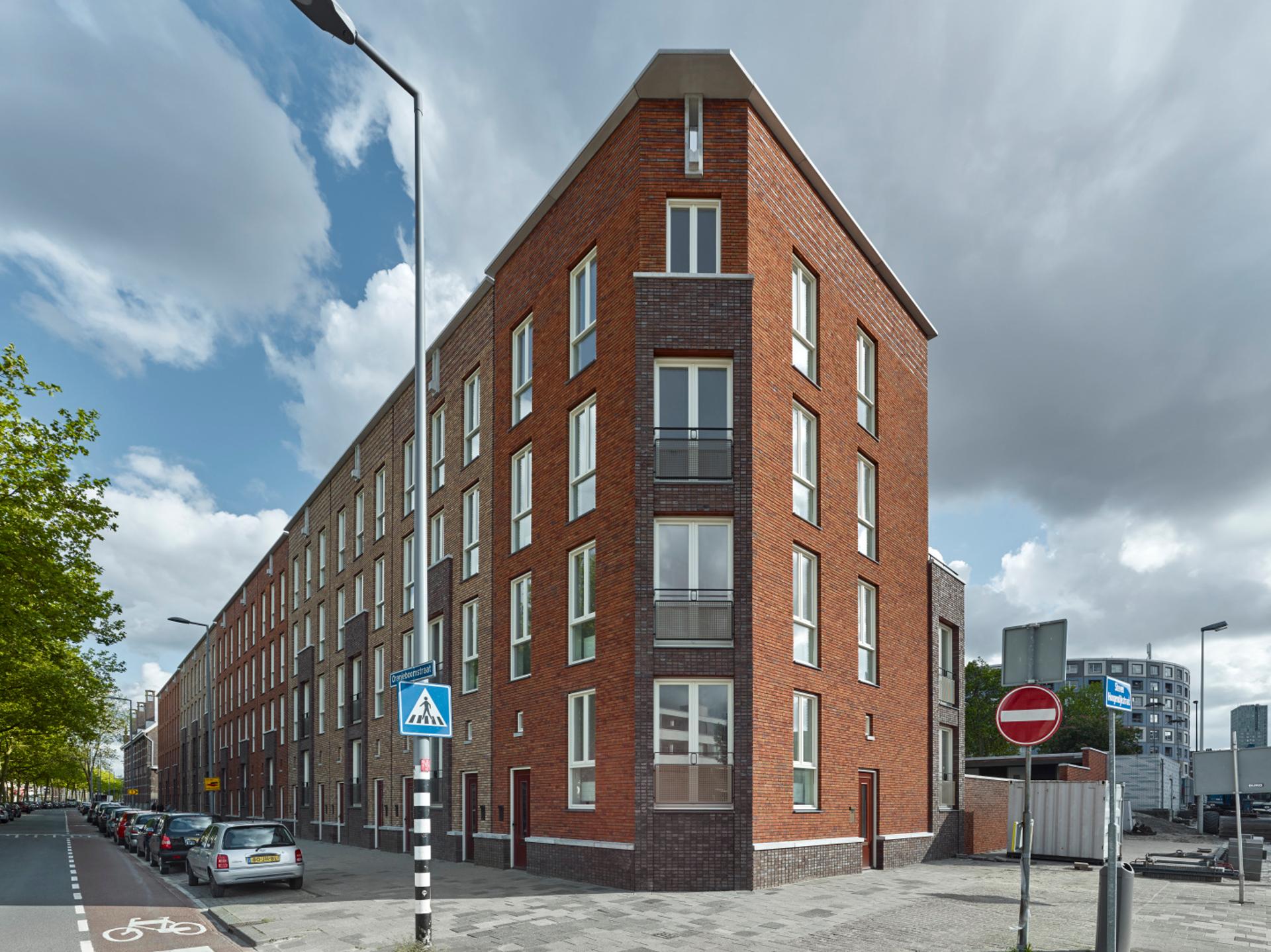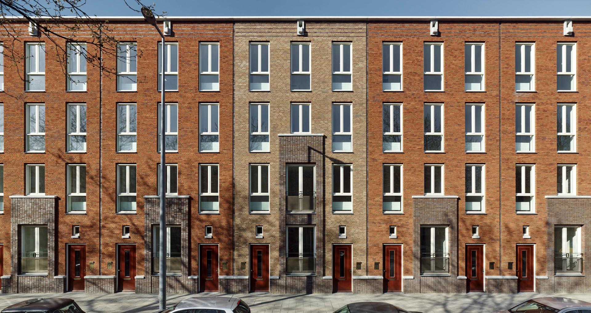 Projektem sociálního bydlení se architekti pokusili vrátit do této lokality pocit místa a historie. Rytmus původních uličních fasád obnovili použitím typologie skládaných duplexů a opakováním domů se dvěma vstupními dveřmi. Urbanistický cíl projektu podporují standardní, režné a světle hnědé, ručně tvarované cihlové fasády s náhodně uspořádanými cihlami. Okna a sokly jsou zdůrazněny použitím o něco tmavších barev cihel.