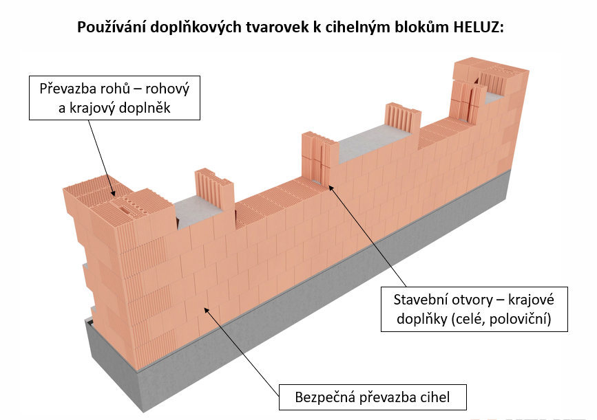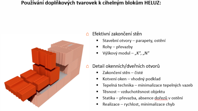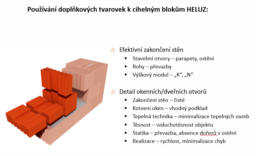 Využívání doplňkových cihel při návrhu projektu a používání při realizaci má zásadní vliv na kvalitu a rychlost realizace stavby. Realizační firma maximálně eliminuje dořezávání bloků a díky doplňkovým cihlám má hrubá stavba dokonalou převazbu a perfektně vyřešené tepelné mosty.