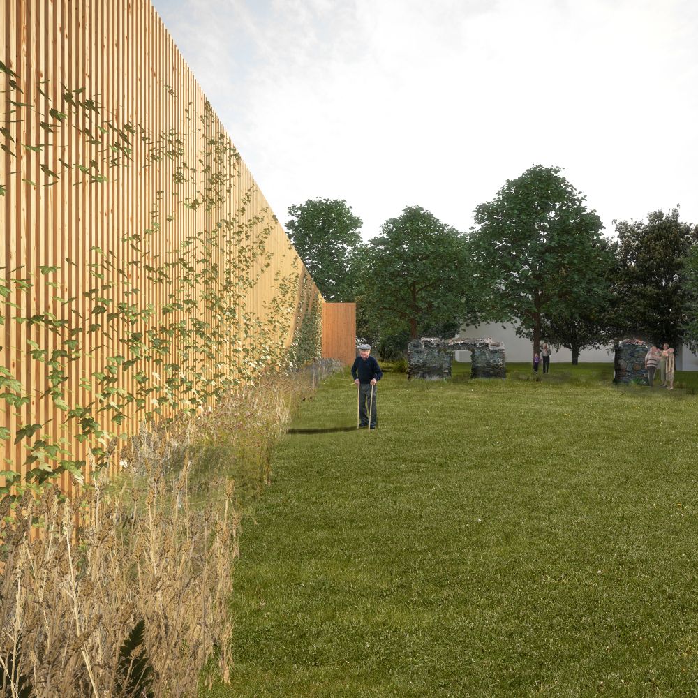 Hodnocení poroty: Silnou stránkou studie je skvělé zmapování širších vztahů a velmi citlivá práce s detaily i materiály. Porota si také cení vnímání celkového měřítka, snahy o zachování hmoty včetně fragmentů původních zdí, vazby na zahradu kostela a především umístění a nabídky krytého společného prostoru v těsné blízkosti se zahradou ticha. Při hodnocení návrhu se spustila vcelku bouřlivá diskuse o některých technických i formálních nedostatcíchm jako například nedostatečné prosvětlení přízemí nebo ryze formální fragment vstupního objektu bez střechy. Jednoznačně se však porota nakonec shodla, že tyto nedostatky mohou být předmětem další diskuse a jejich korekce je reálná. Návrh porotu zaujal také citlivým přístupem k místu a přesvědčivou artikulací znalostí lokality. I přestože se mohou některé myšlenky autora zdát lehce „zasněné“, jsou vesměs inspirativní a podnětné a stojí za to se jim věnovat blíže. Jednou ze slabých stránek návrhu je dopravní řešení, zejména parkovací plochy v blízkosti objektu zbytečně oddělují obytný dům a park. Řešené území je však natolik rozlehlé, že lze uvažovat o jejich variantním umístění.