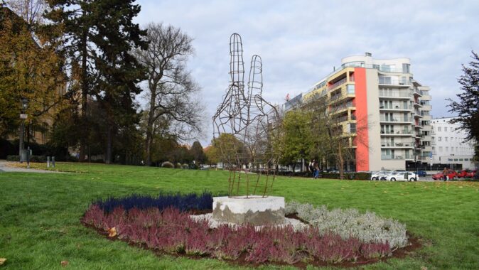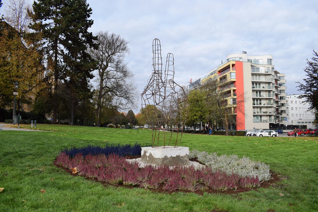 travnatém porostu v Šafaříkových sadech před Západočeským muzeem