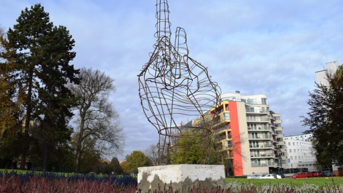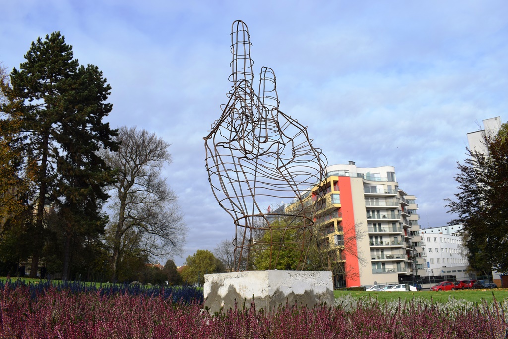 v Plzni se od pátku 1. listopadu tyčí dva metry vysoký drátěný objekt ruky