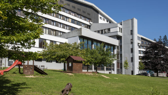 Vzhledem k tomu, že se jedná o dětskou léčebnu, je kladen velký důraz na perfektní provedení detailů. Na všechny mezibytové stěny, příčky a rovněž předsazené stěny byl uplatněn ucelený systém s dvojitým opláštěním deskou TOPAS. Většina konstrukcí svislých stěn je v modulu W112. Desky jsou standardní tloušťky 12,5 mm. Uvnitř konstrukce je 8 cm izolační minerální vaty a celková tloušťka mezibytových příček je tak 150 mm. Dodejme, že ačkoliv TOPAS není typickou akustickou deskou, takto poskládaná konstrukce přesto vyhověla požadavku na zvukovou neprůzvučnost příček 56 dB.