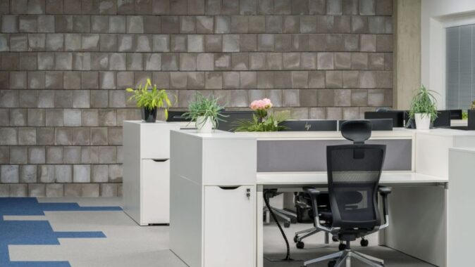 Materiálově se uplatňuje beton konstrukcí, sklo, kov. Změkčení přináší svěšené panely Heradesign nad pracovišti, koberce a mobiliář. Firma se věnuje distribuci produktů pro gastronomii. Věříme, že kanceláře budou dobře sloužit, stejně jako gastro zařízení v kuchyni.