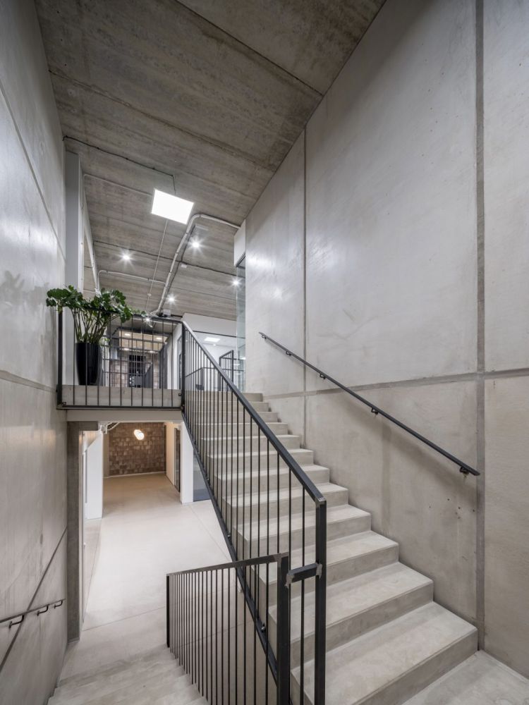 Kanceláře jsou usazeny v prvním patře v otevřené dispozici mezi jednací boxy a