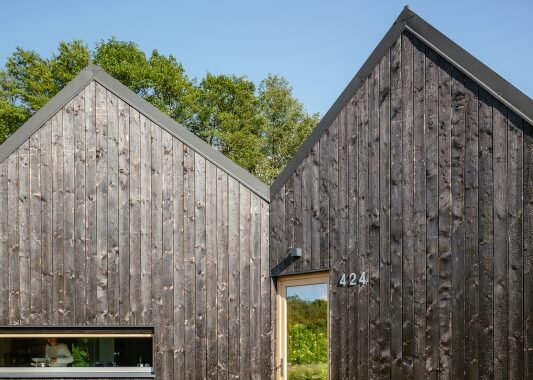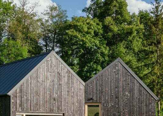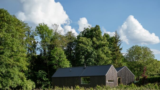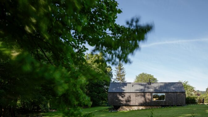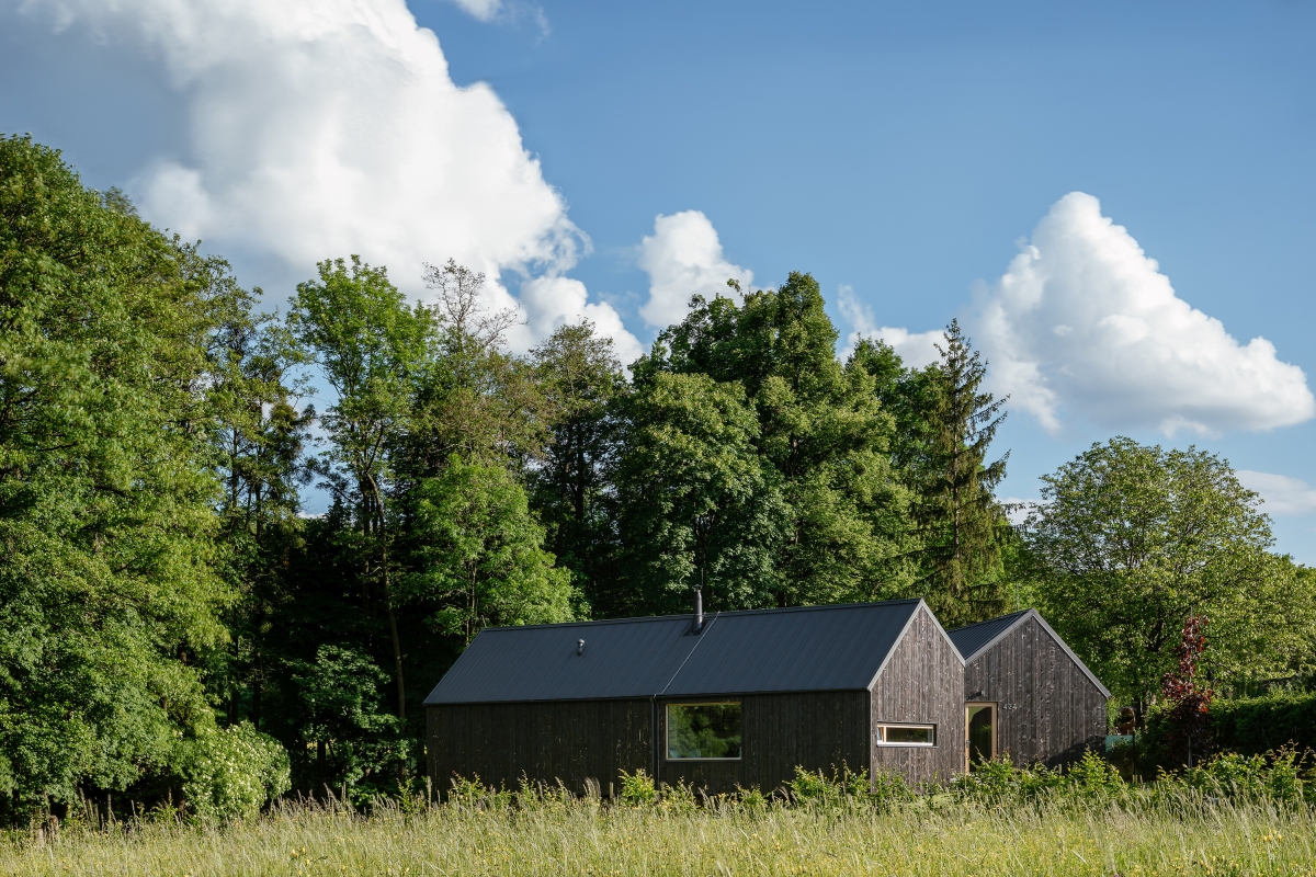 Parcela se nachází na okraji zástavby v jižní části obce Rybí. Vymezuje ji přístupová cesta, přilehlý potok se vzrostlými stromy a oplocení sousedního domu. Plošně se jedná o poměrně velkou parcelu, nicméně ochranná a bezpečnostní pásma lesa a podzemních plynových zásobníků zastavitelnou část pozemku významně zredukovala a do značné míry i předurčila tvar domu.
