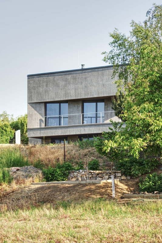Základními odrazovými prvky návrhu v kontextu místa pozemku jsou jižní orientace a svažitost pozemku, přístup na pozemek z horní severní strany,