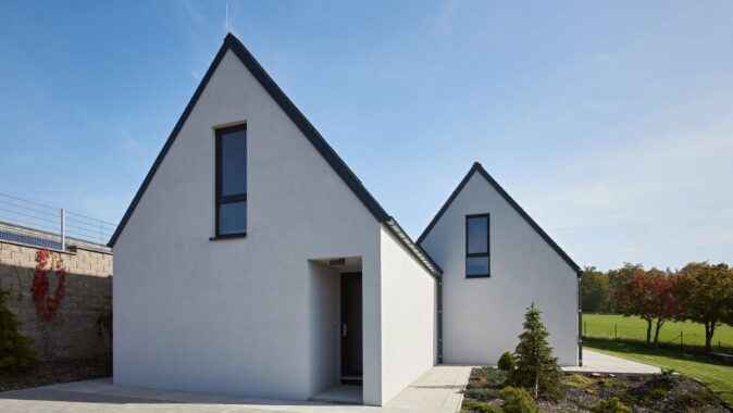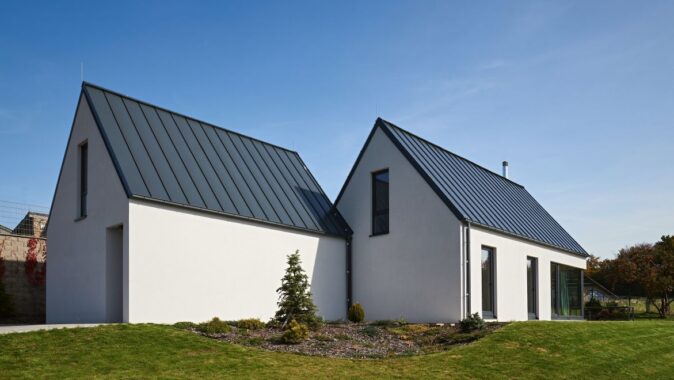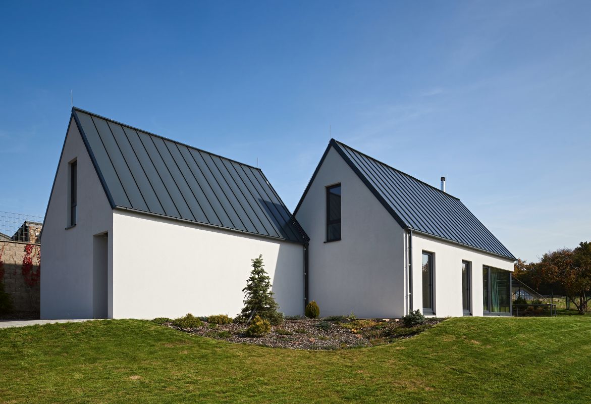 se sedlovou střechou o sklonu 50 °, které jsou vůči sobě posunuté a uvnitř