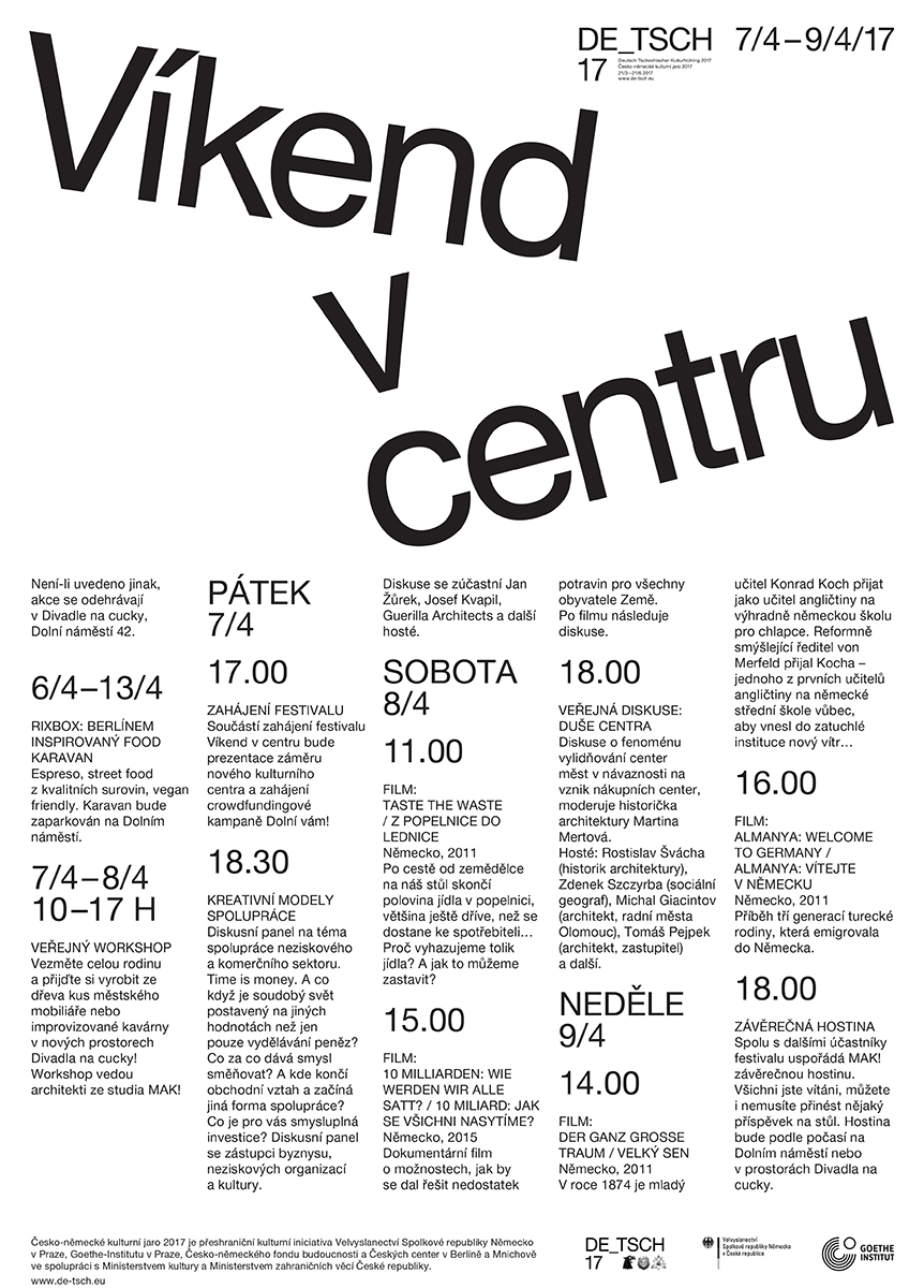 proběhne v rámci festivalu Víkend v centru v nově vznikajícím kulturním prostoru Divadla na Cucky