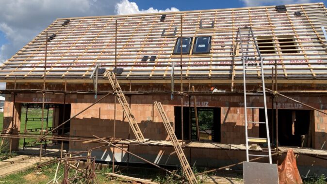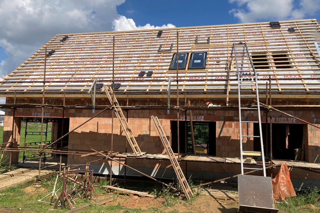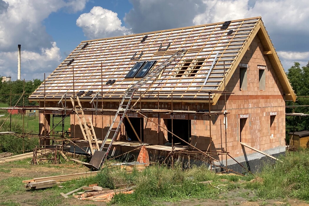 Hned dva domy pro dospělé potomky vyrůstají současně na téměř hektarové „zahradě“ rodičů na kraji jihočeského Chýnova. I když se projekty architektonicky liší, jeden bude klasickým bungalovem a druhý podkrovním domem, základní stavební prvek – cihlu HELUZ FAMILY – mají stejný.