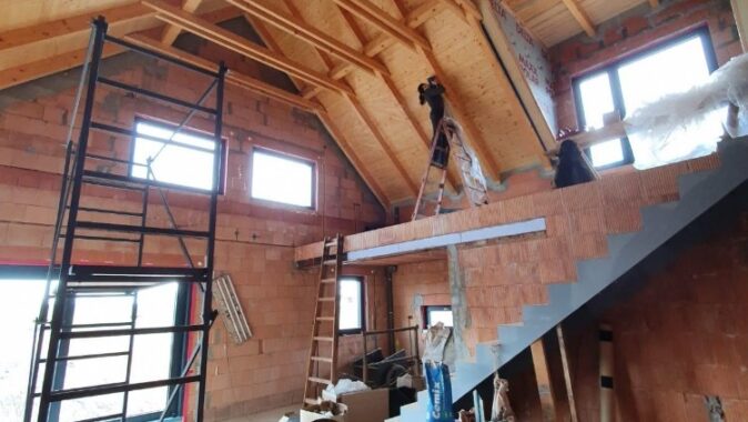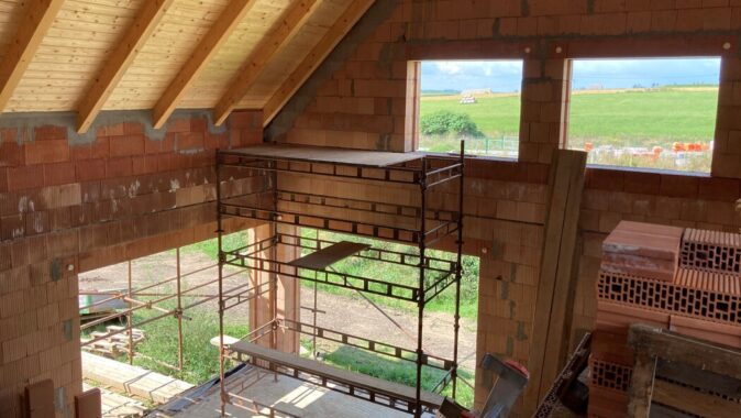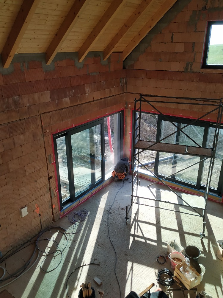 Kromě tepelné pohody bylo při stavbě pamatováno i na akustický komfort. „Chtěli jsme odhlučnit obytné místnosti, jako dětský pokoj, ložnice atd.,“ doplňuje investor. Klid obyvatelům domu proto zajistí příčky z akustických cihel HELUZ AKU Z 17,5 broušená. Písmeno Z v názvu cihly symbolizuje specifický tvar cihelného bloku připomínající písmeno „Z“, který zvyšuje schopnost zvukové izolace. Zdivo z HELUZ AKU Z 17,5 broušená (375x175x249 mm) oboustranně omítnuté vápenocementovou omítkou tloušťky 15 mm má laboratorní vzduchovou neprůzvučnost Rw = 51 dB, což je nadstandardní hodnota vzhledem k malé tloušťce zdiva vyzděného na maltu pro tenké spáry.