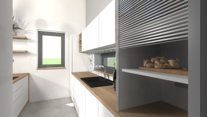 V plánu investora RD v Chýnově je tepelné čerpadlo i fotovoltaické panely na střeše, nebo počítačem řízené ovládání větrání a stínění. I proto využil nosné a žaluziové překlady HELUZ, které mají flexibilní vnitřní prostor pro uložení, či spíše ukrytí kazet s venkovním stíněním, ať už si nakonec obyvatelé domu vyberou rolety, žaluzie nebo screeny.