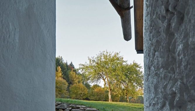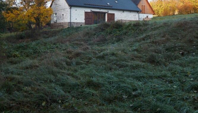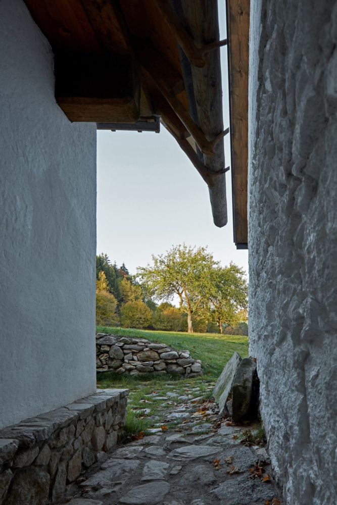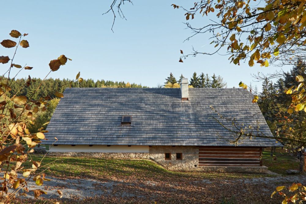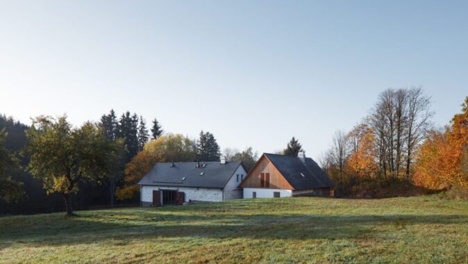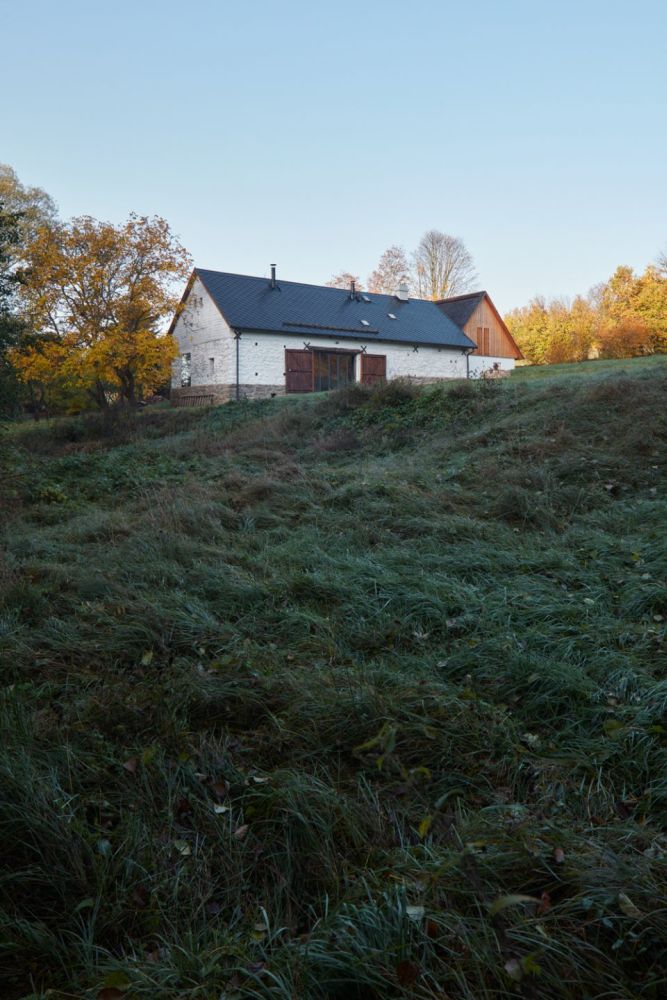 Tato rekonstrukce hledá odpovědi skrz respekt k původní logice stavení a použití tradičních postupů, snaží se o přirozenost spíš než formální napodobení, pracuje s nedokonalostí a stárnutím. Usedlost, zřejmá už na mapě z roku 1750, tvoří dva domy do L – chalupa a stodola, harmonicky usazené do svažité louky. Zvenku se návrh držel co nejblíž původní podoby, víc se děje uvnitř.