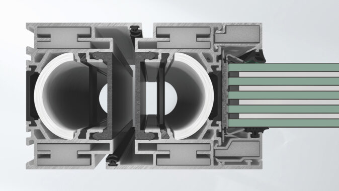 Geometrie profilů s otevřeným falcem umožňuje efektivní výrobu a instalaci skrytého kování. Kování lze nainstalovat efektivně bez nutnosti dalších obráběcích činností a téměř bez použití jakéhokoli nářadí. Kromě osvědčeného postupu kolíkováním lze nyní rohové spoje šroubovat nebo lisovat. To snižuje celkovou hmotnost protipožárních dveří Schüco ADS 90 FR 90 v porovnání se starým systémem Schüco FireStop T90 až o 20 procent.