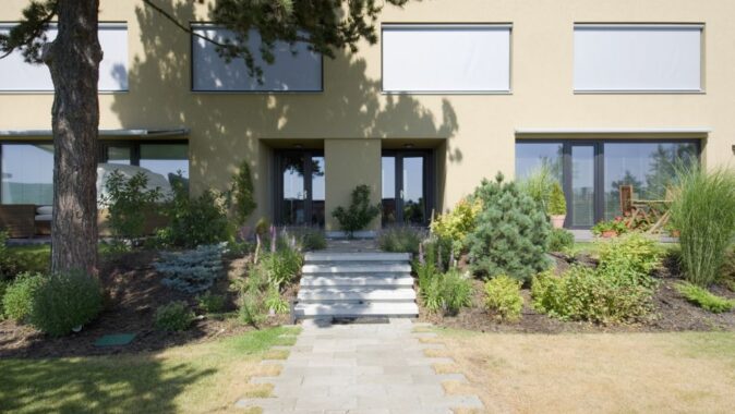 Dům leží ve vnitrobloku brněnské vilové čtvrti, která je
