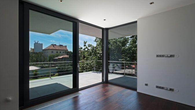 a lehké materiály jako je hliníkový systém oken Vekra a také ucelený koupelnový