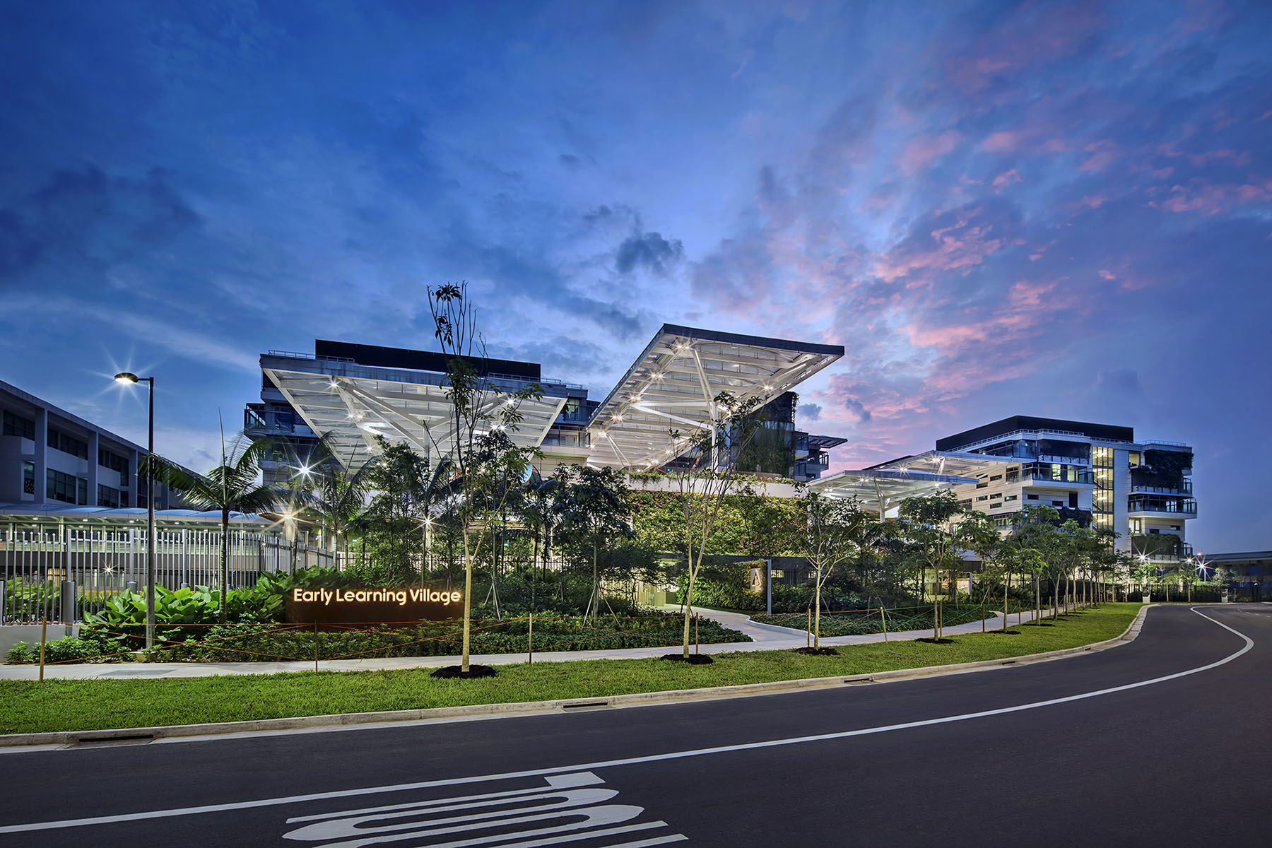Early Learning Village zahrnuje skupinové prostory (učebny) rozmístěné kolem centrálního náměstí s řadou outdoorových herních zón a s plaveckým bazénem, vše s ochrannou vrstvou proti UV záření. Školky potěšily „chytré detaily“, na které architekti při projektování mysleli, například dveře dětských velikostí, pracovní lavičky s otisky stop pro děti různých výšek