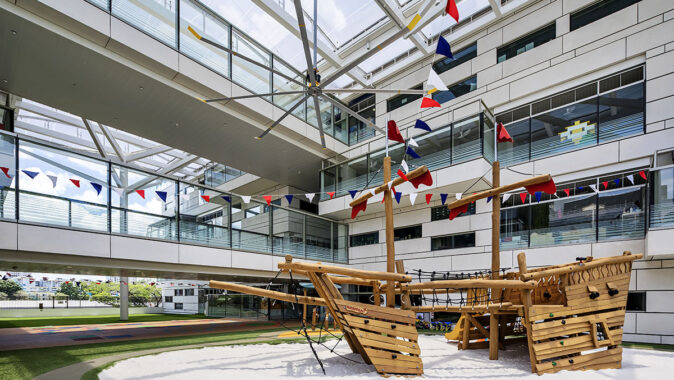 v rámci Early Learning Village. Jedná se o klasický případ kreativního klienta, který ponechává architektům volnou ruku, aby přinášeli inovativní a neotřelá řešení obecného zadání. V tomto případě toho, jak povzbudit malé děti, aby se v průběhu svých školních dní radovaly a bavily. Jsme si jisti, že prostředí školky umožní dětem se učit mnohem víc, rychleji a intuitivněji.“