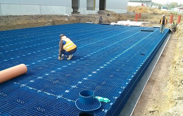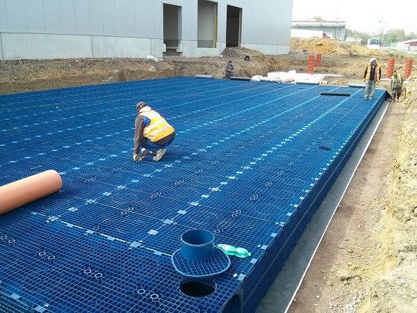 celkem 628 retenčních boxů Wavin Q-Bic, které pojmou téměř 258 kubíků dešťové