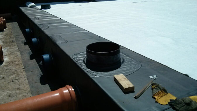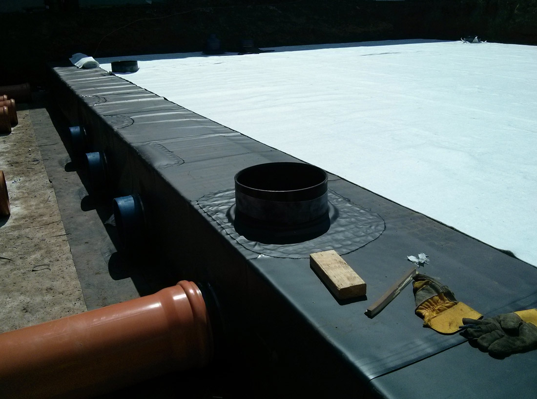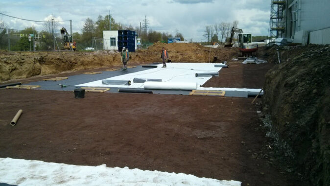 rozsáhlý projekt odvodnění zpěvněných ploch a plochých střech nového skladového