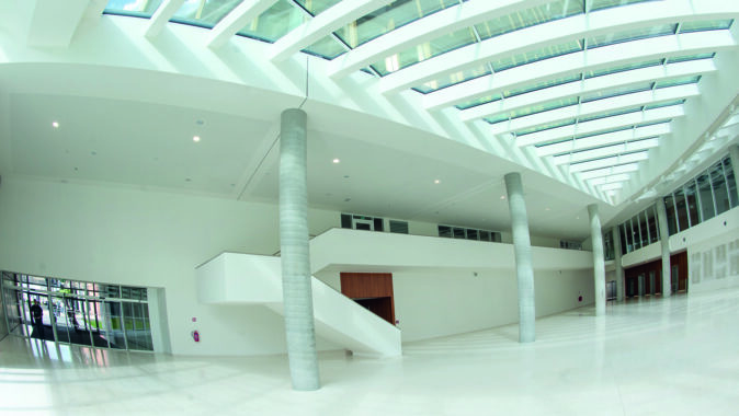 prvků se s pohybem proměňuje a podporuje dynamický design fasády. Hmota nižšího