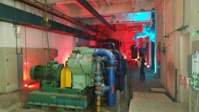 Prostorově nejvýraznější část komplexu bývalé elektrárny je hlavní hala, dělená na část strojovny, generátorovnu a vlastní turbínovou halu. Vstup do objektu s návštěvním lobby kopíruje koncept zbylé části a až puristická strohost je tu srozumitelná. Vlastní výstavní plocha této části představuje několik od sebe odlišných výstavních prostorů zabírajících podlahovou plochu 800, 530, 240 a 120 m2. Libreto návrhu a pomyslné cesty nepředstavuje pohyb skrz objekt a architektonické zdůraznění vlastní cesty, ale předpřipravený, vyčištěný a sjednocený prostor sám.