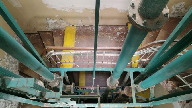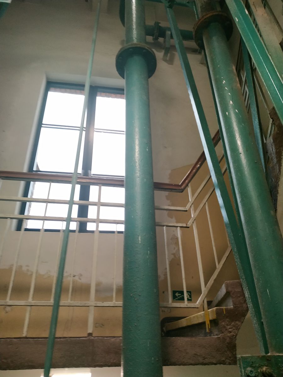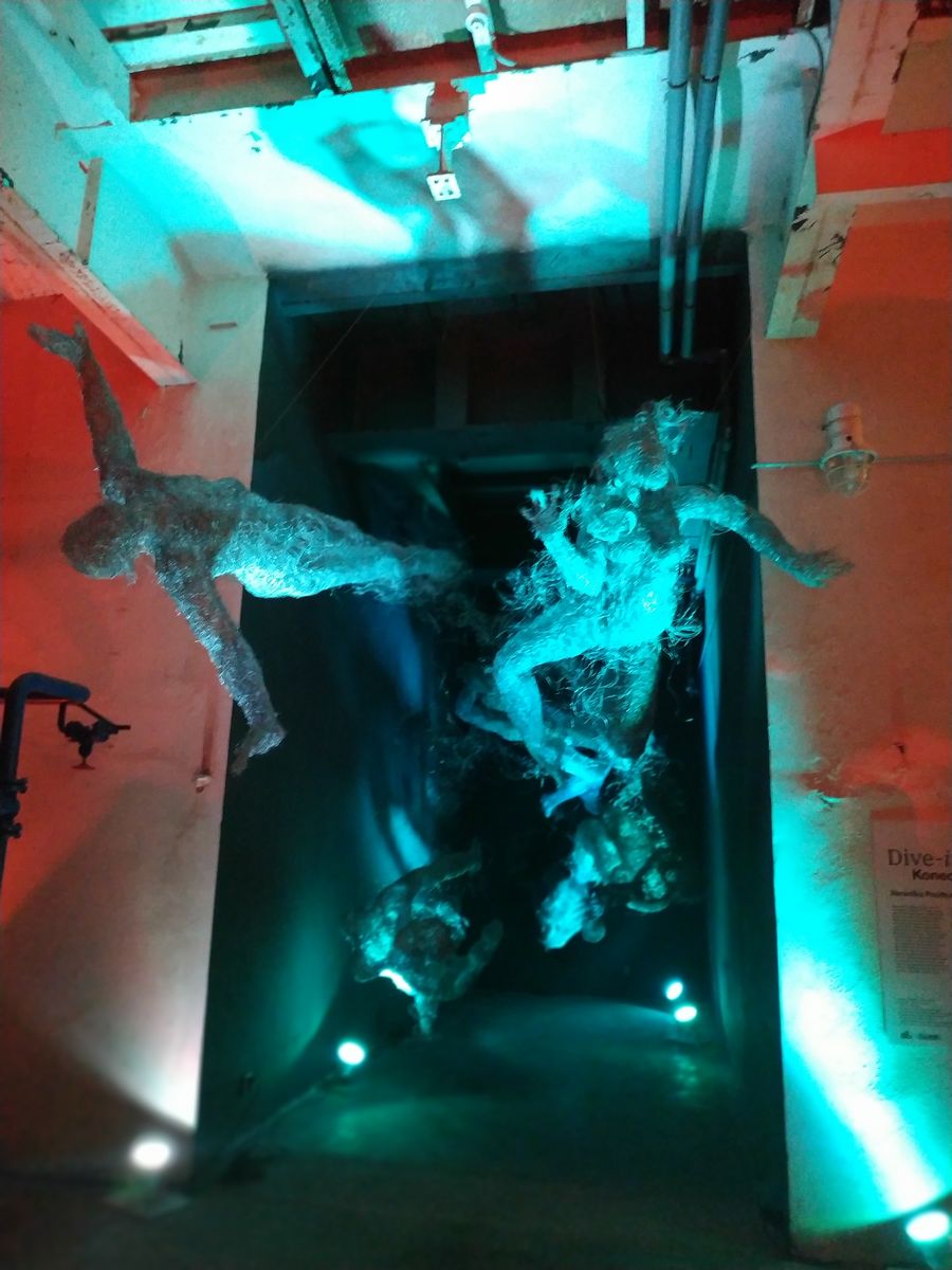 Třetí, hmotově nejmenší prostor – krček – osově propojuje bývalou rozvodnu s velínem. V nezatepleném prostoru najdeme přiznané původní ocelové kování oken. Spolu s velínem tvoří krček v dispozici symbolickou pomlku mezi odlišnými galerijními prostory. Výrazným prvkem tu je stropní prosklení s původním členěním se střešním světlíkem. Vstup do hlavní turbínové haly lemují vstupy do hygienického zázemí, vertikálního propojení schodištěm a místnosti pro workshopy. Při pohledu na sjednocený charakter dveří do programově odlišných provozů a vlastní největší haly lze prostoru vytknout architektonickou strohost a uniformitu. Ale je zřejmě, že se tu principiálně nepracuje se zdůrazněním hlavní osy celého komplexu či jedinečností vstupu do výstavních sálů, naopak koncept je důsledný a spočívá v očištění, nikoliv v interpretaci pohybu návštěvníka.