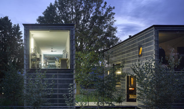 Dům využívá průmyslové komponenty, jejichž aplikace je velice efektivní a zároveň zábavná, často hraničící s úrovní fetiše. Opláštění, obklad z průhledných akrylátových panelů, je jednoduše upevněno na kostru z měkkého dřeva, čímž vzniká zajímavý detail s obnaženou konstrukcí. Velká zapuštěná okna umocňují subtilní vzhled stavby a přitom rámují poutavé výhledy ven i dovnitř. Interiéry obou domů jsou provedeny ve zredukované a základní paletě materiálů; dřevotřískovými deskami, dřevěnými trámy, překližkou, surovým kovem a pryží. Dokazuje to, že ta nejlepší architektura nemusí být ani zdaleka nejdražší.