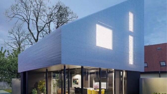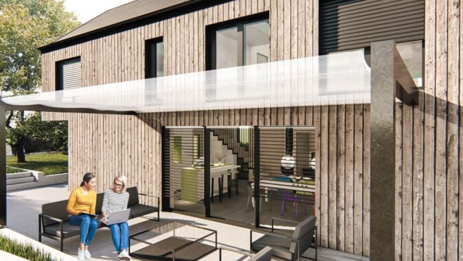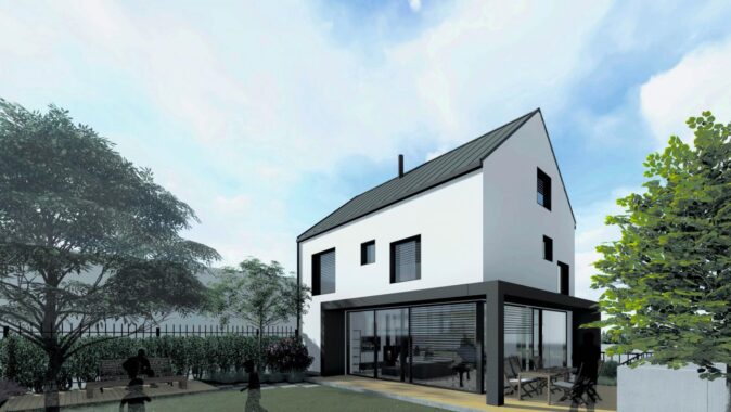 navrhovaná dřevostavba s originálním využitím sklolaminátových fasádních