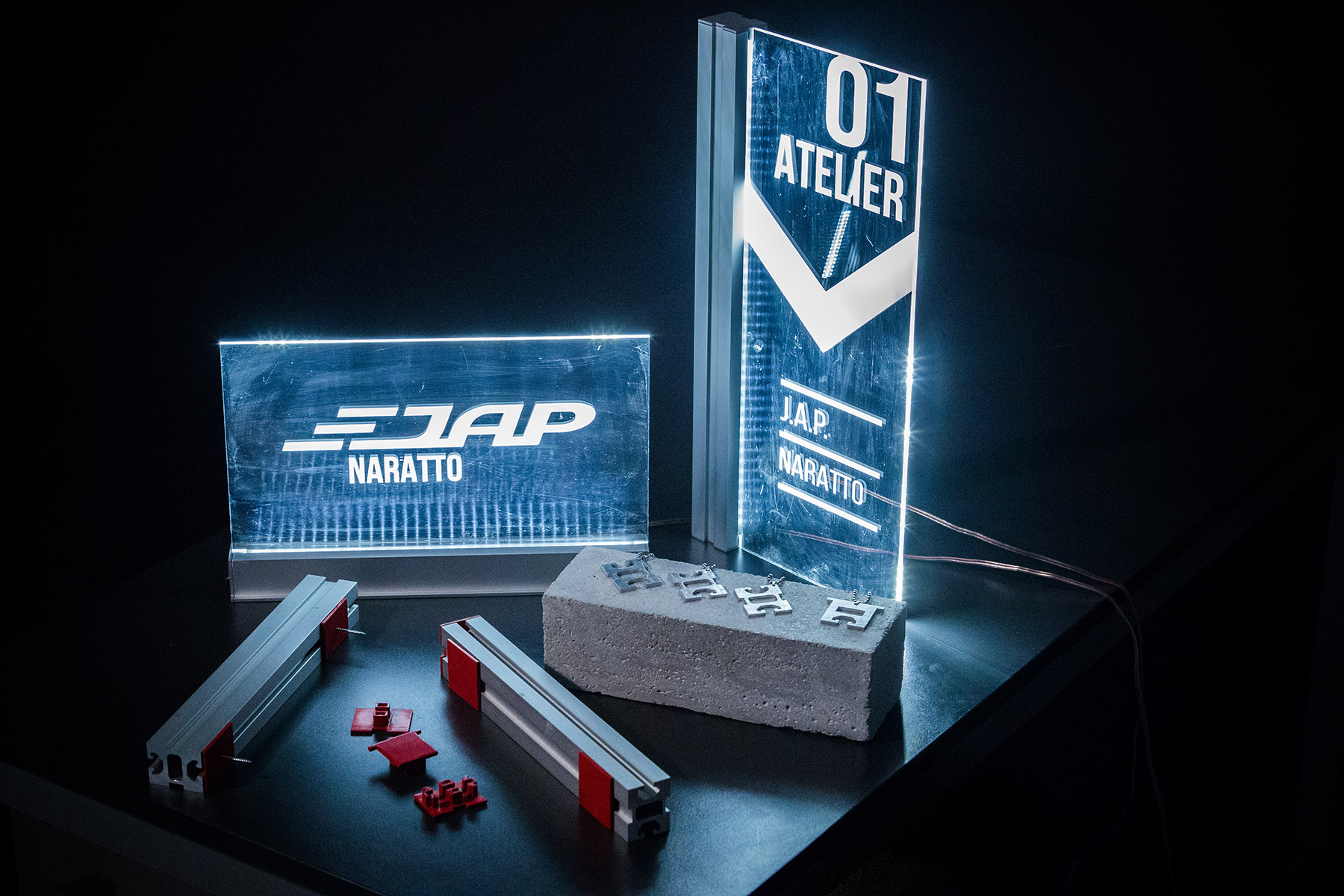 Talentovaní studenti Ateliéru designu interiéru Fakulty umění a designu Univerzity Jana Evangelisty Purkyně se zúčastnili také originálního projektu, který iniciovala společnost J.A.P. z Přerova, zabývající se výrobou dveřních systémů a interiérového skla. Ta poskytla studentům hliníkové profily, ze kterých se vyrábí dveře MASTER a STRONG a nechala jim naprosto volnou ruku v tom, jak s nimi naloží. „Hliník v naší výrobě hodně využíváme a vnímáme jej nejen jako velice praktický, ale také estetický prvek. Zajímalo nás tedy, jak si s ním poradí nastupující generace designérů,“ vysvětluje pan Petr Paksi, výkonný ředitel J.A.P. A poradili si rozhodně skvěle – ukázalo se totiž, že hliníkové profily zpracovávané firmou J.A.P. zdaleka nemusí sloužit pouze jako konstrukční součást dveřních bezobložkových systémů, ale mohou být proměněny v nadčasové umělecké dílo. Své o tom ví Patrik Mareš, který získal cenné zkušenosti již v předchozí spolupráci se společností SOLODOOR. Před sebou neviděl jen hliníkový profil, ale odhalil v něm vkusný doplněk interiéru v podobě designové stojací lampy a orientačních tabulí do budov. „Koncept interiérové lampy, která svým tvarem připomíná obilný klas, jsem založil na kontrastu přírody a industriálních materiálů kovu a betonu. U druhého projektu jsem se zase rozdělil stávající hliníkový profil na kratší úseky, přičemž na každý kus jsem uchytil tabuli ze skla. Tu jsem podsvítil LED diodami, aby sloužila jako nositel orientační informace, která je tvořena gravírovaným motivem,“ vysvětluje Patrik Mareš tvůrčí proces, který jej dovedl k vytvoření funkčních prototypů.