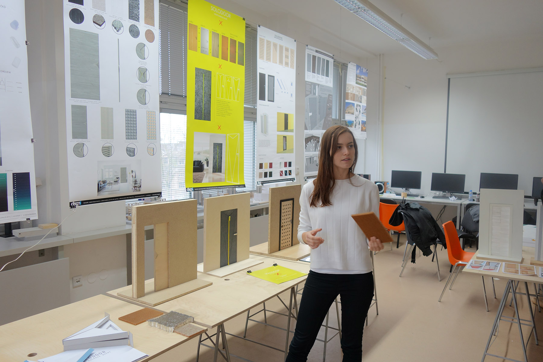 I výrobci dveří hledají inspiraci ve světě studentského designu. Příkladem je společnost SOLODOOR ze Sušice řadící se k předním českým výrobců interiérových dveří, která v minulém roce oslovila studenty Ateliéru designu interiéru Fakulty umění a designu Univerzity Jana Evangelisty Purkyně v Ústí nad Labem, aby přišli s návrhem vlastního pojetím dveřního křídla, které by nebylo zatíženo rutinním chápáním dveří. „Pět posluchačů Ateliéru designu interiéru dostalo za úkol vytvořit v rámci své semestrální práce návrh několika atraktivních úprav dveří, které by vycházely ze standardní konstrukce dveří SOLODOOR. Jeden z návrhů pak měli vyvzorovat pro větší názornost do modelu,“ říká pan Martin Dozrál, generální ředitel společnosti SOLODOOR. Výsledky své práce prezentovali studenti zástupcům společnosti na jaře roku 2016 a představili opravdu pestrou škálu netradičních návrhů, které spojoval velmi inovativní a kreativní přístup. Autoři nejlepších tří návrhů byli posléze oceněni finanční odměnou. „Studenti se s úkolem popasovali opravdu s velkým nasazením a neuvěřitelnou kreativitou a našli pro dveřní křídlo nová a netradiční, ale přitom velmi praktická využití,“ uvádí pan Martin Dozrál a doplňuje: „Měli jsme šanci vidět například originální model dveří pokrytých filcovou látkou s kapsou na zip, jež by měla sloužit jako neobvyklý úložný prostor, nebo návrh dveří, které mají místo výplně posuvnou desku umožňující měnit funkční vlastnosti dveří. Ještě dál šel se svým návrhem nadaný student Patrik Mareš, který se vydal ze světa dveří pryč a navrhnul unikátní spojovací systém, díky kterému mohou být jednotlivé desky propojeny a sloužit například jako originální dělící příčky nebo netradiční obklady stěn.“