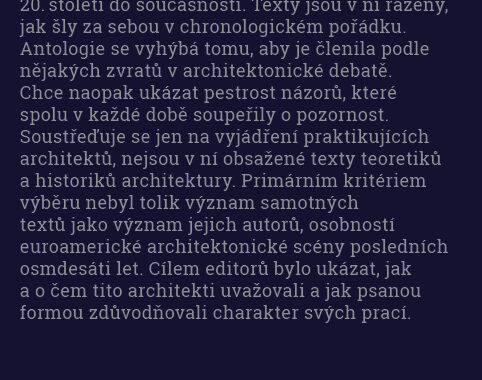 architektonické debatě. Soustřeďuje se konečně jen na texty