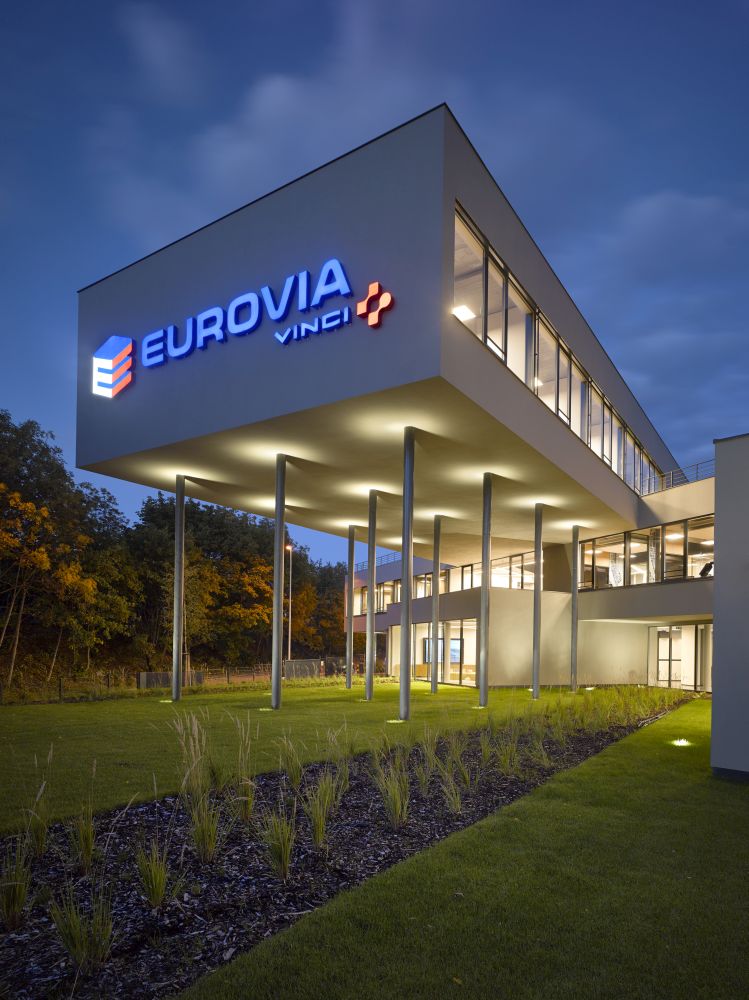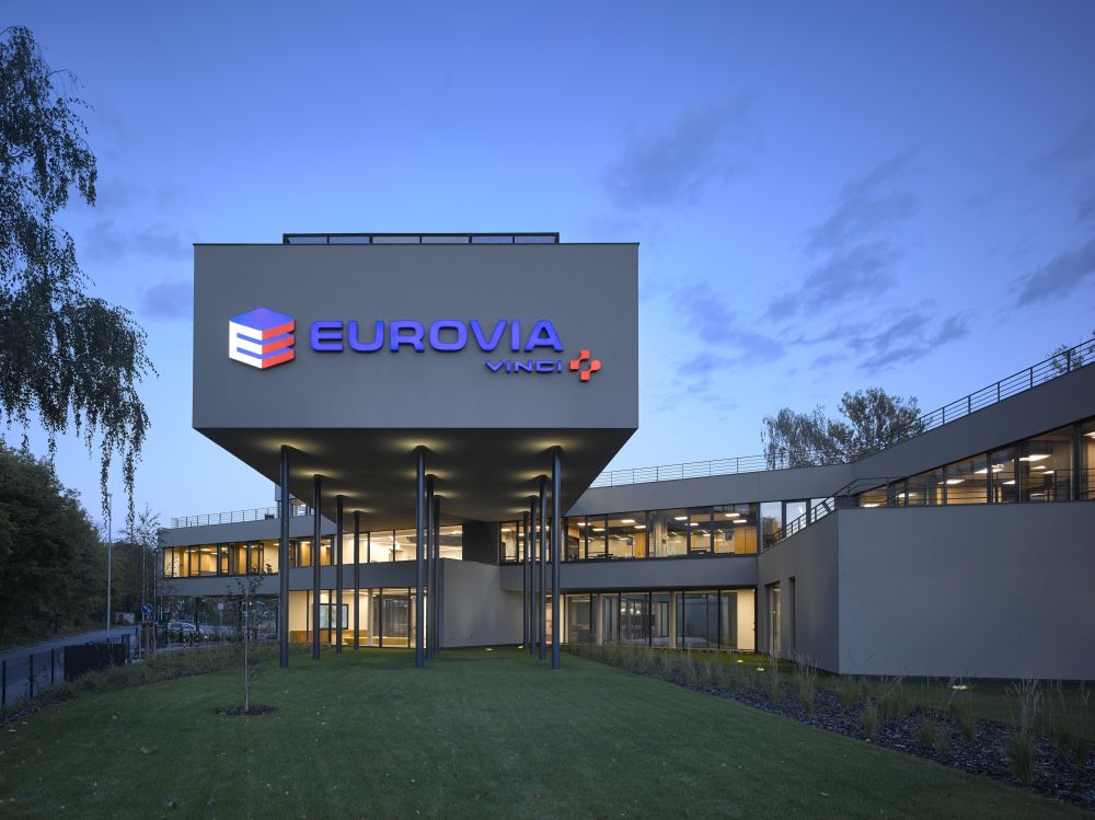 Stavba sídla společnosti Eurovia v Praze představuje odpověď architekta na téma „ kancelářská budova jinak“. Místo ryze utilitárního obvyklého monobloku vznikla, na pozemku bez výrazného okolního kontextu, na první pohled expresivně rozehraná, pro uživatele však logicky provozně komponovaná skladba lapidárně tvarovaných hmot propojující interiér s exteriérem. Svým uživatelům nabízí nadstandardní pracovní prostředí – nadstandardní a dostatečně reprezentativní nikoliv mírou okázalosti, nýbrž prostorovou kvalitou, nápaditým a neotřelým řešením interiéru včetně orientačního systému budovy.