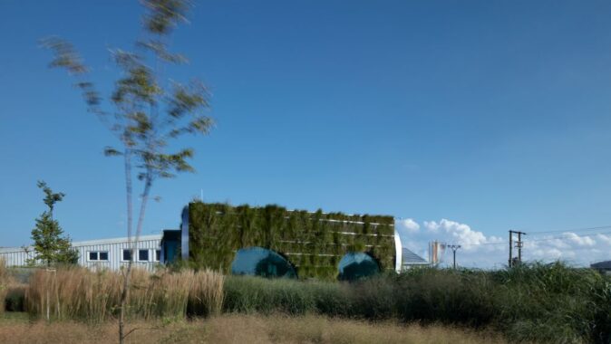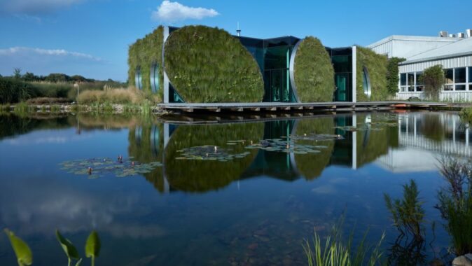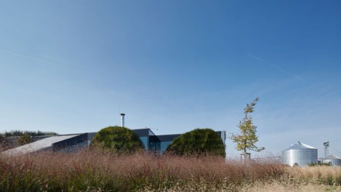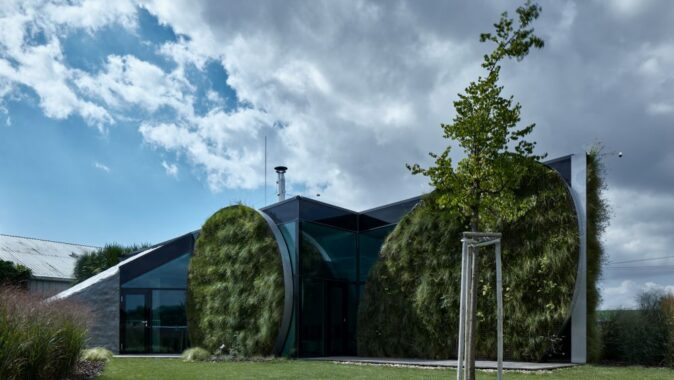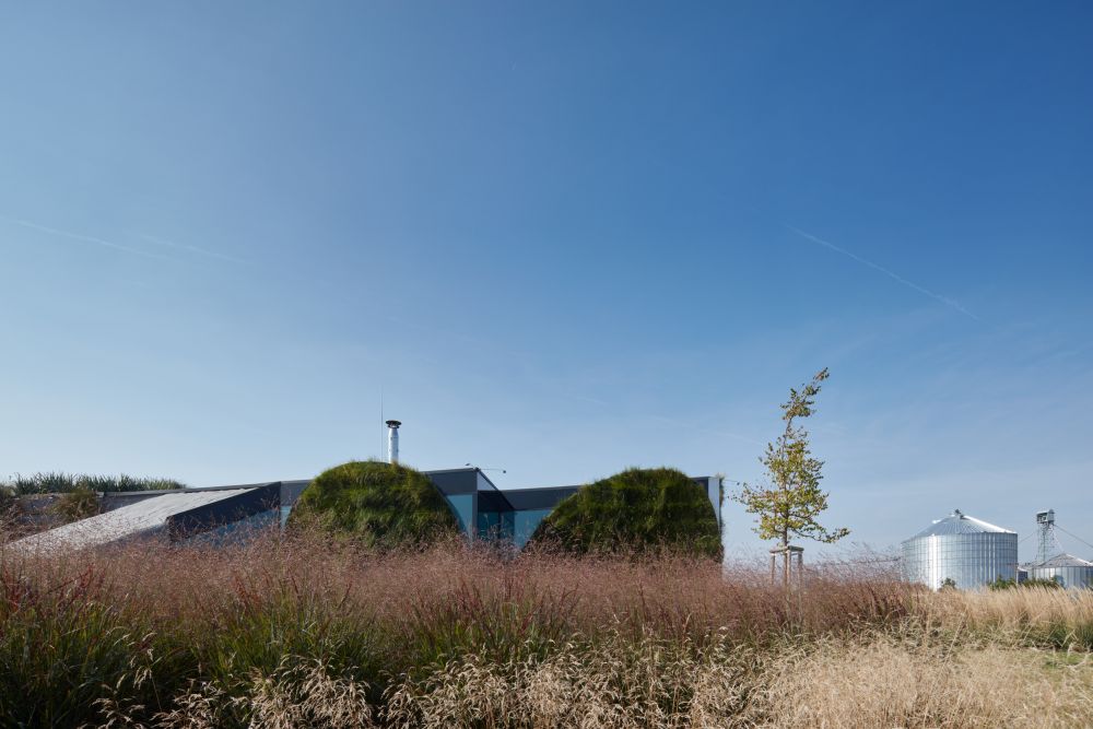 Architektura objektu představuje dichotomní pojetí prostoru svou dvojakostí zvyšující účinek na člověka. Ten má pocit, že vstupuje do něčeho spojeného se zemí, s prapodstatou vizuálně představovanou velkými koly plnými zeleně. Konstrukce vnitřní rovná se struktura vnější. Tíha konstrukce je její pravdivostí popřena a zbývá jen prostorový zážitek s horizontem plynule procházejícím průhledy z interiéru do exteriéru.