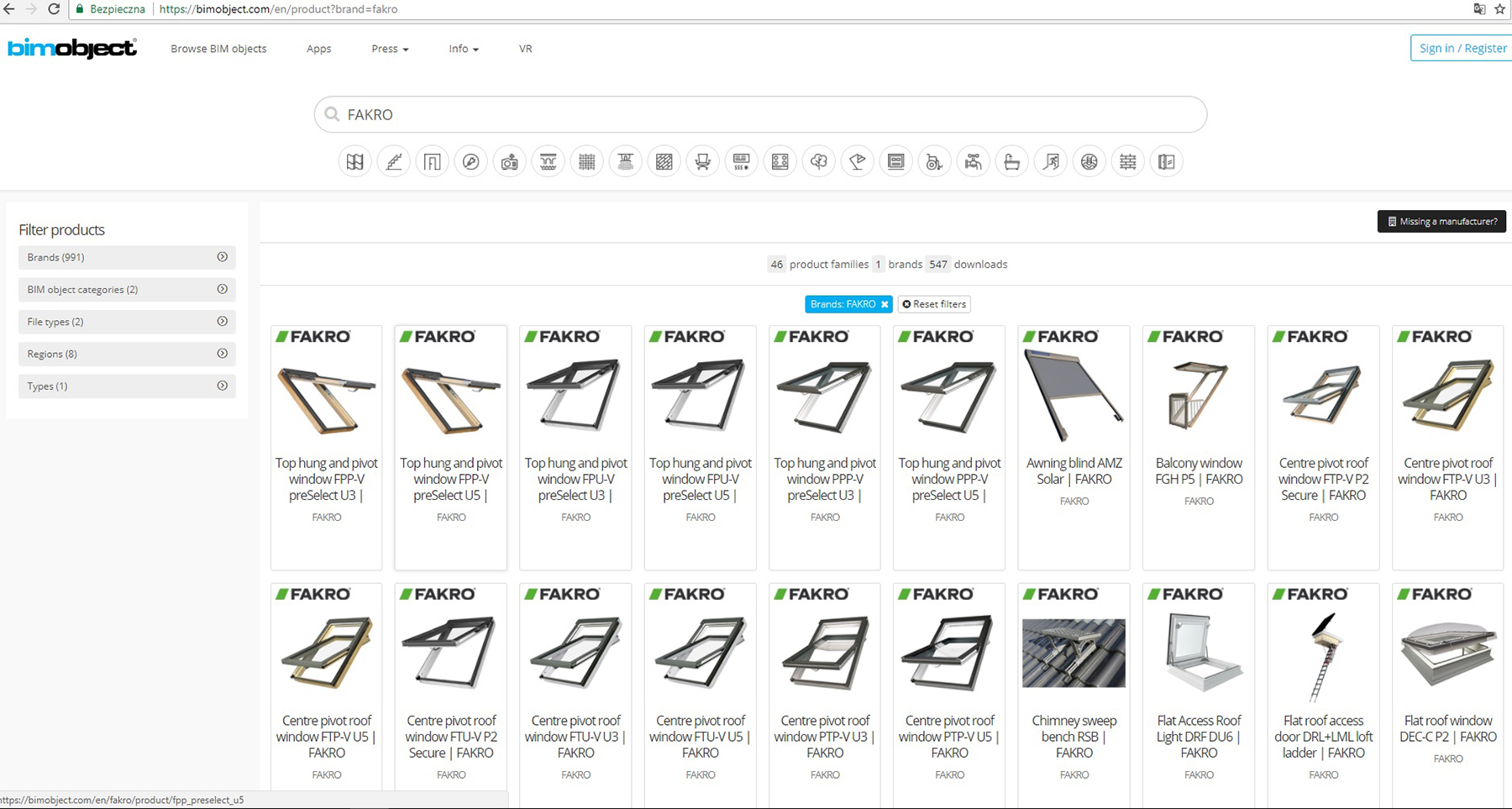 FAKRO na BIMobject.com