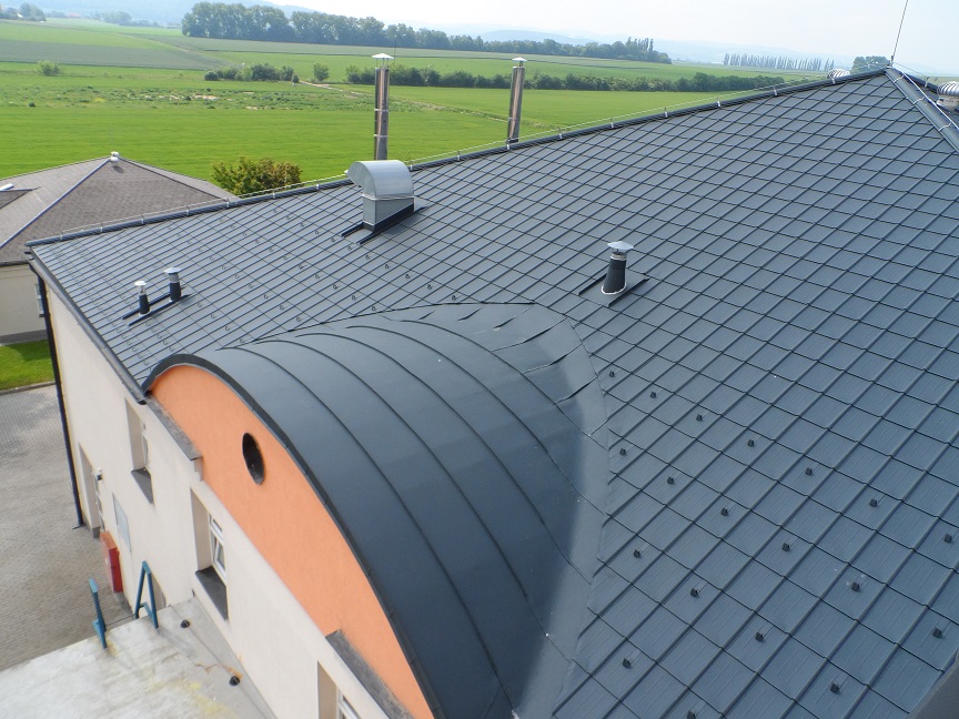 a kulaté vikýře byly falcované z lakovaného ocelového plechu. Ke