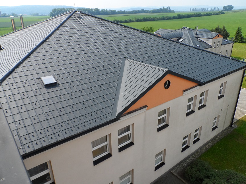 střechy všech devíti objektů ústavu kvalitní střešní krytinu, která
