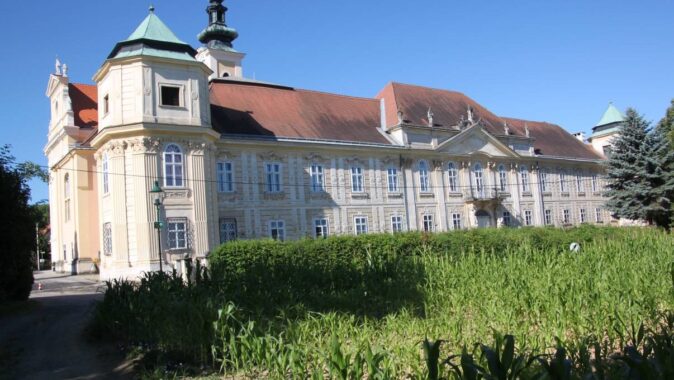 Stavitelem byl biskup Franz Anton Marxer, v době výstavby pomocný biskup a generální vikář Vídně a Posova pod Enns, který je v kostele také pohřben. Biskup měl v plánu zřídit zde i seminář a letech 1762 – 1766 bylo západní křídlo rozšířeno a byl zde zřízen seminář pro Dolní rakouskou část pasovské diecéze.