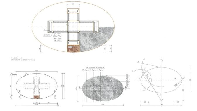 Mezi povinné přílohy patřily: půdorys, příčný řez, podélný řez v měřítku 1:50, se zakreslením oltáře, ambonu, sessio +2 sedes, 2 oltářních stupňů a umístěním křtitelnice.